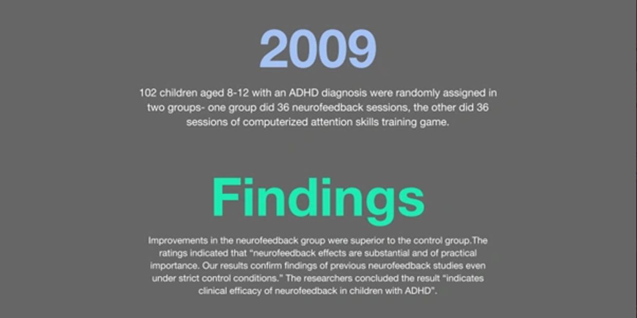 The impact of neurofeedback on ADHD has been studied the most among all neurofeedback therapies. Many studies have been published over the years; we chose a few recent ones to show you. Gevensleben, H., Holl, B., Albrecht, B.,Vogel, C., Schlamp, D., et al. (2009). Is neurofeedback an efficacious treatment for ADHD?: A randomized controlled clinical trial. Journal of Child Psychology and Psychiatry, 50, 780–789